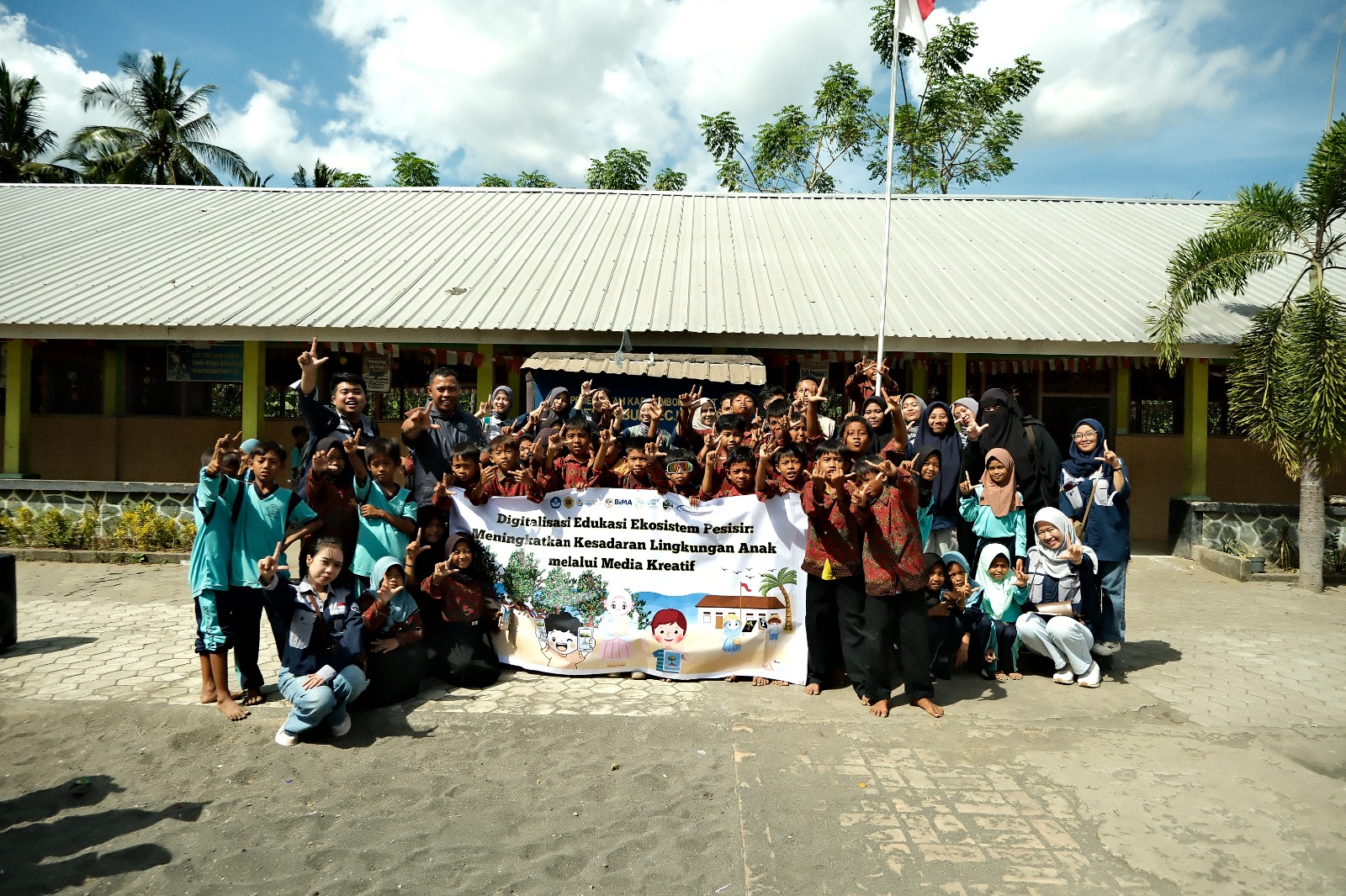 The program has produced several outputs, including animated videos, interactive applications, and educational games about mangroves, conservation zones, marine animals, marine debris, and disaster mitigation. These were directly tested with 90 students at State Elementary School 5, South Lembar. Beyond improving environmental understanding, this method also sparked an unprecedented enthusiasm for learning.