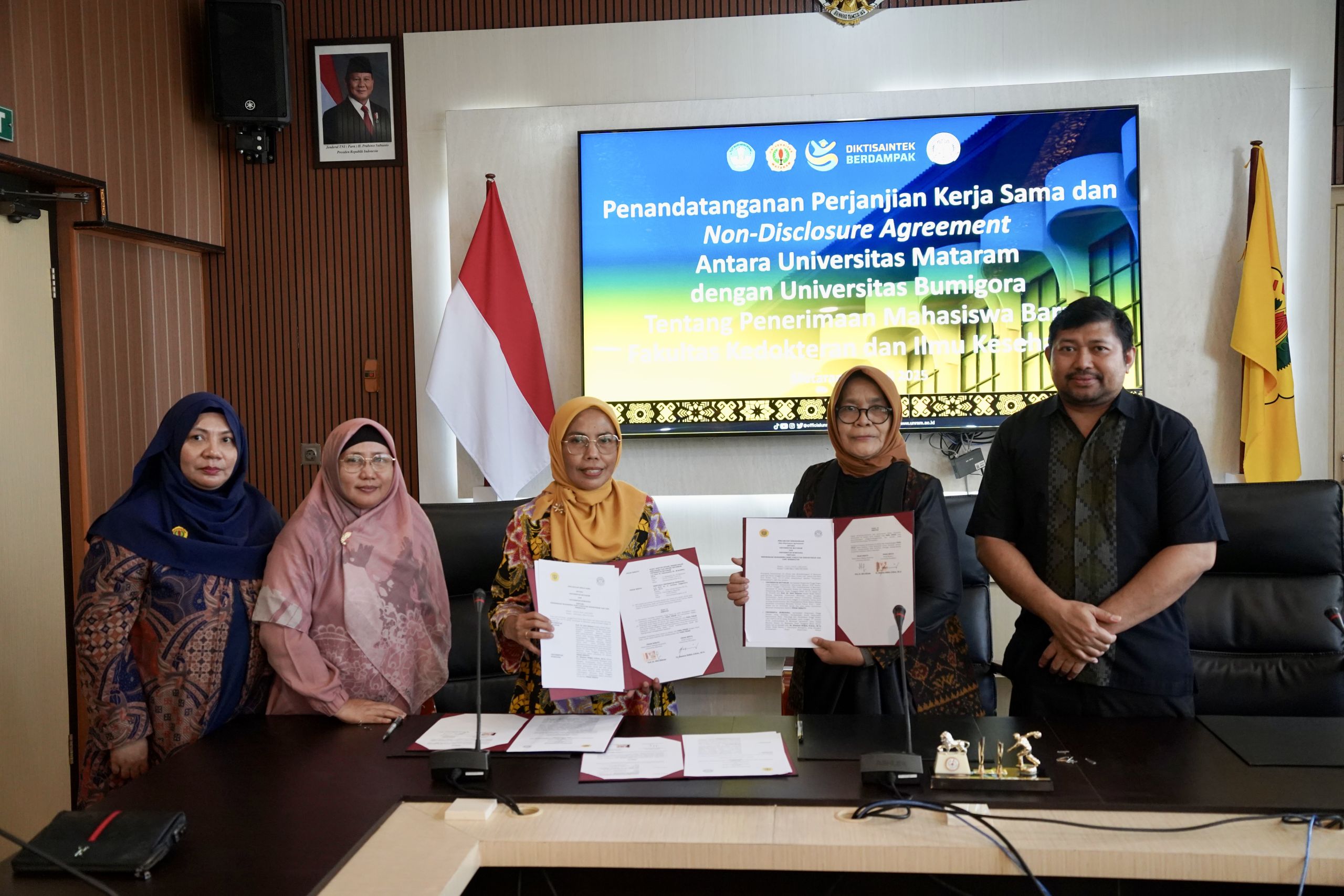 Mataram, University of Mataram – The University of Mataram signed a Cooperation Agreement and Non-Disclosure Agreement (NDA) with Universitas Bumigora (UBG) on Wednesday, July 23, 2025, at the Rector’s Meeting Room. This collaboration focuses on the admission of new students to the Medical Study Program.