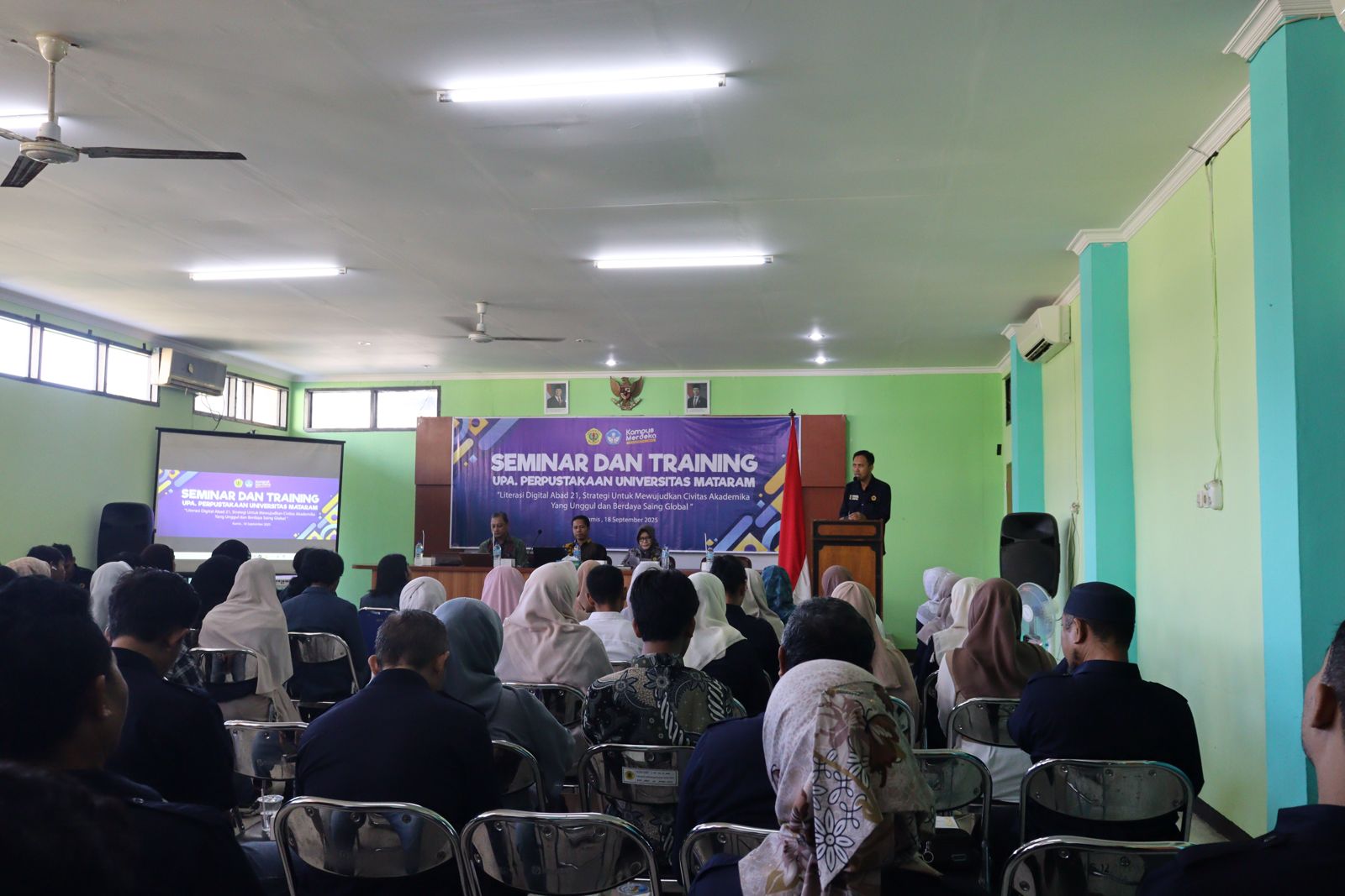 Mataram, University of Mataram – To strengthen digital literacy, the University of Mataram (Unram) organized a Seminar and Training through the University Library (UPA) on Thursday (September 18) at the Unram Library Hall. The event carried the theme “21st-Century Digital Literacy: Strategies to Build an Excellent and Globally Competitive Academic Community.”