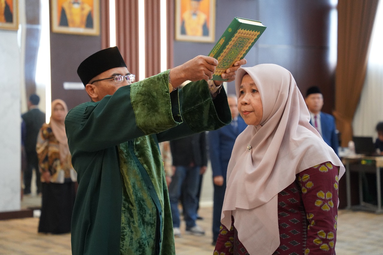 Mataram, University of Mataram – The Rector of the University of Mataram (Unram), Prof. Bambang Hari Kusumo, M.Agr.St., Ph.D., officially inaugurated and administered the oath of office to Ir. Rina Adriani, MP., as Vice Dean for Finance and General Affairs of the Faculty of Animal Science for the 2025–2029 period, on Friday (July 11), at the Senate Conference Room, Unram Rectorate.