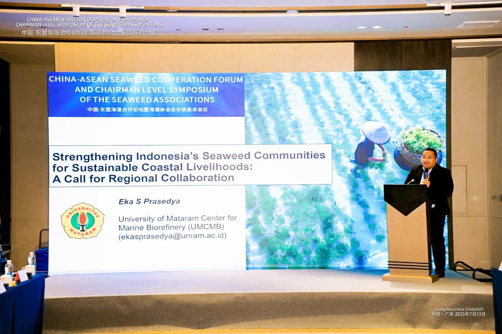 Mataram, Universitas Mataram – Universitas Mataram (Unram) kembali menorehkan prestasi di kancah internasional. Eka Sunarwidhi Prasedya, S.Si., M.Sc., Ph.D., peneliti dari Unram, hadir sebagai delegasi Indonesia dalam ajang bergengsi China–ASEAN Seaweed Corporation Forum & Chairman Level Symposium of Seaweed Associations yang diselenggarakan pada 12–14 Juli 2025 di Guangzhou, Tiongkok.