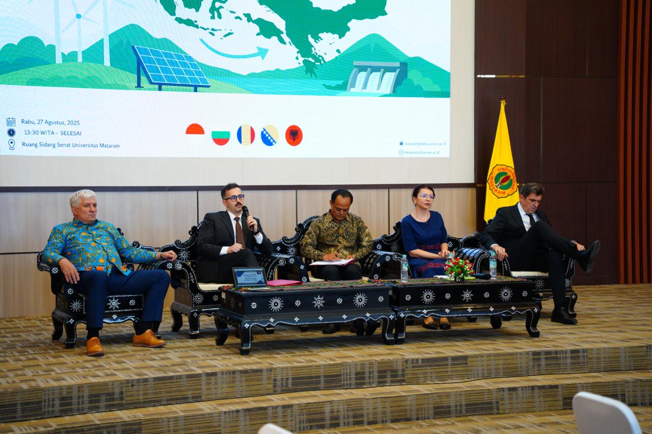 Mataram, Universitas Mataram – Universitas Mataram (Unram) menggelar Dialog Panel Potensi Kerja Sama Energi Baru Terbarukan (EBT) Kawasan Balkan: Studi Kasus Proyek EBT di Nusa Tenggara Barat (NTB) pada Rabu, 27 Agustus 2025, bertempat di Ruang Sidang Senat Unram.