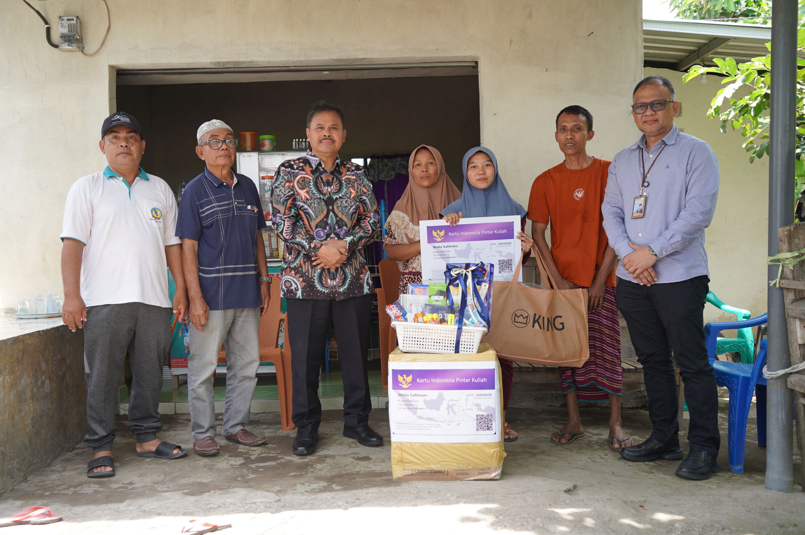 Mataram, Universitas Mataram – Direktur Jenderal Pendidikan Tinggi (Dirjen Dikti), Prof. Dr. Khairul Munadi, S.T., M.Eng., bersama Rektor Universitas Mataram (Unram), Prof. Ir. Bambang Hari Kusumo, M.Agr.St., Ph.D., melakukan kunjungan silaturahmi ke rumah dua mahasiswa penerima Kartu Indonesia Pintar Kuliah (KIP-K) Unram, pada Sabtu, 25 Oktober 2025. Kunjungan ini menjadi bentuk perhatian pemerintah dalam memastikan akses pendidikan tinggi tetap terbuka bagi seluruh lapisan masyarakat, termasuk mereka yang berasal dari keluarga kurang mampu.