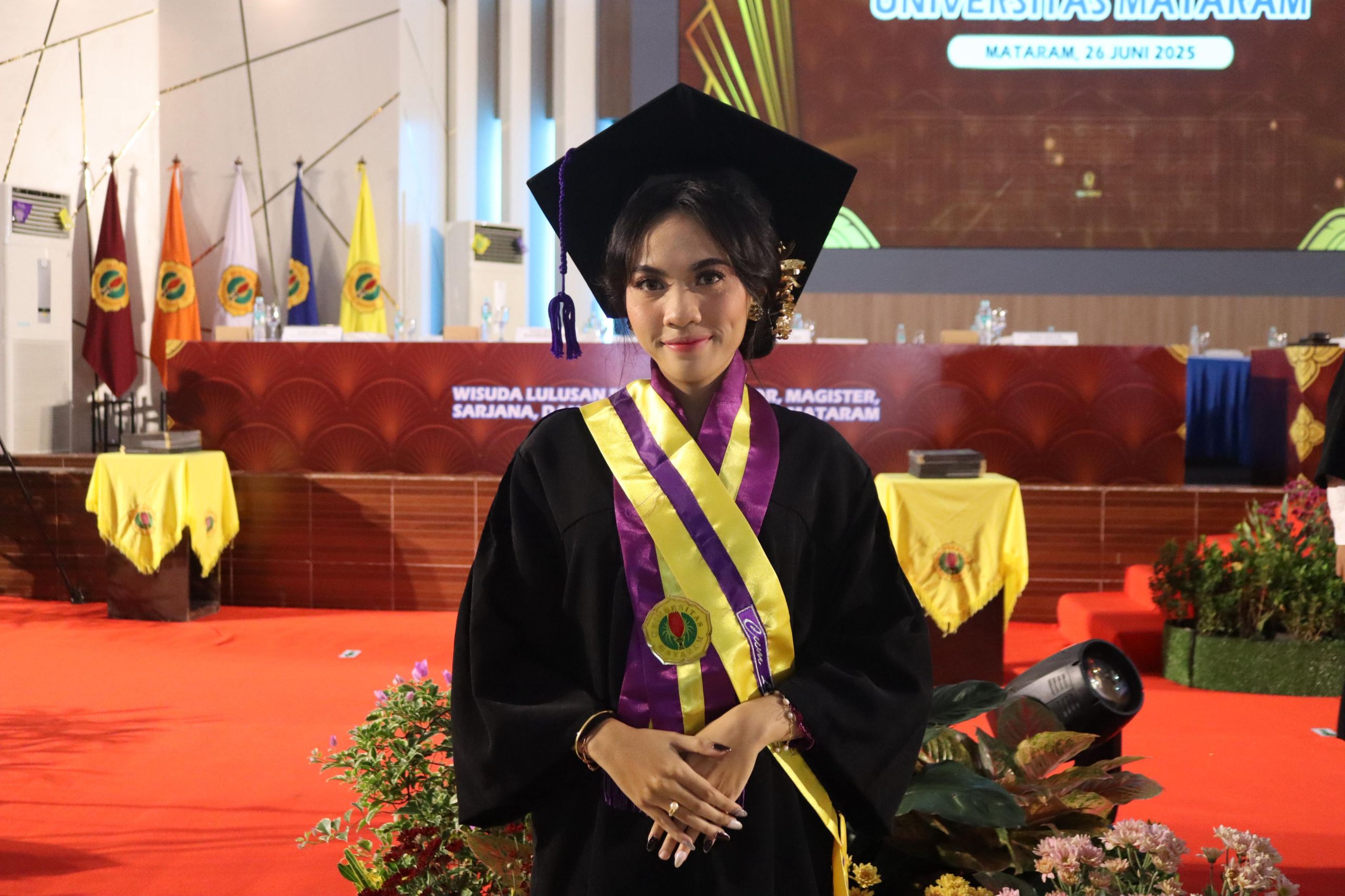 Memulai perjalanan magister pada awal tahun 2024 di Unram, Ia berhasil menyelesaikan studi dalam kurun waktu kurang dari 2 tahun dan mengikuti wisuda pada periode Juni 2025 yang meluluskan 1.175 orang, pada hari Kamis (26/6) di Auditorium M. Yusuf Abubakar. Dalam acara wisuda tersebut, Laksmi berhasil menjadi salah satu wisudawan terbaik dengan IPK sempurna yakni 4.00.