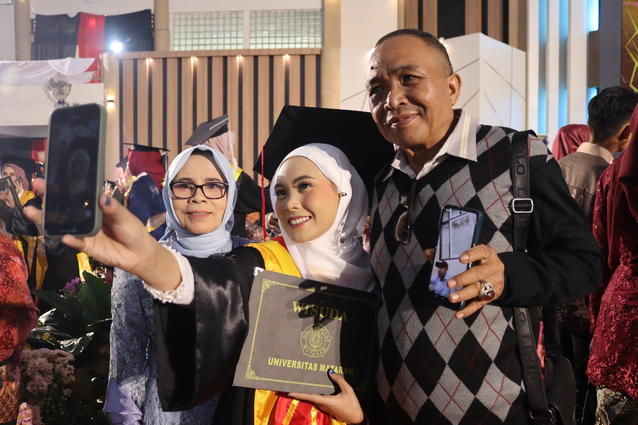 Rektor Unram, Prof. Ir. Bambang Hari Kusumo, M.Agr.St., Ph.D., dalam pidatonya menyampaikan ucapan selamat kepada para wisudawan dan keluarga yang hadir. “Saya mewakili seluruh civitas akademika Universitas Mataram mengucapkan selamat kepada para wisudawan dan wisudawati, serta kepada seluruh keluarga besar mereka,” ujar Rektor Unram.