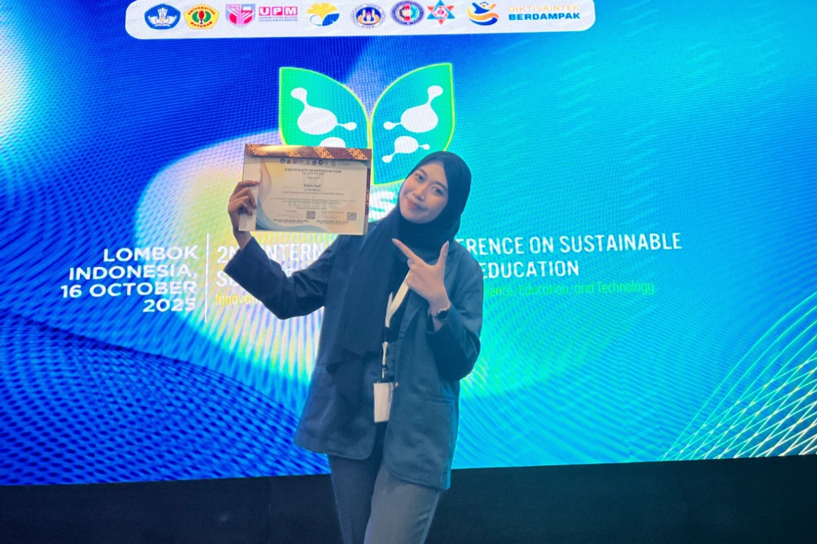 Mataram, Universitas Mataram – Mahasiswa Program Studi (Prodi) Ilmu Komunikasi Universitas Mataram (Unram) menorehkan prestasi membanggakan di tingkat internasional. Aisyia Azzahara bersama tim lintas jurusan berhasil meraih Juara I kategori Teknologi dalam ajang Poster Competition pada International Conference on Sustainable Science, Technology and Education (ICSSTE) 2025, yang diselenggarakan oleh Fakultas Keguruan dan Ilmu Pendidikan (FKIP) Unram pada 16 Oktober 2025 di Hotel Lombok Astoria, Mataram.