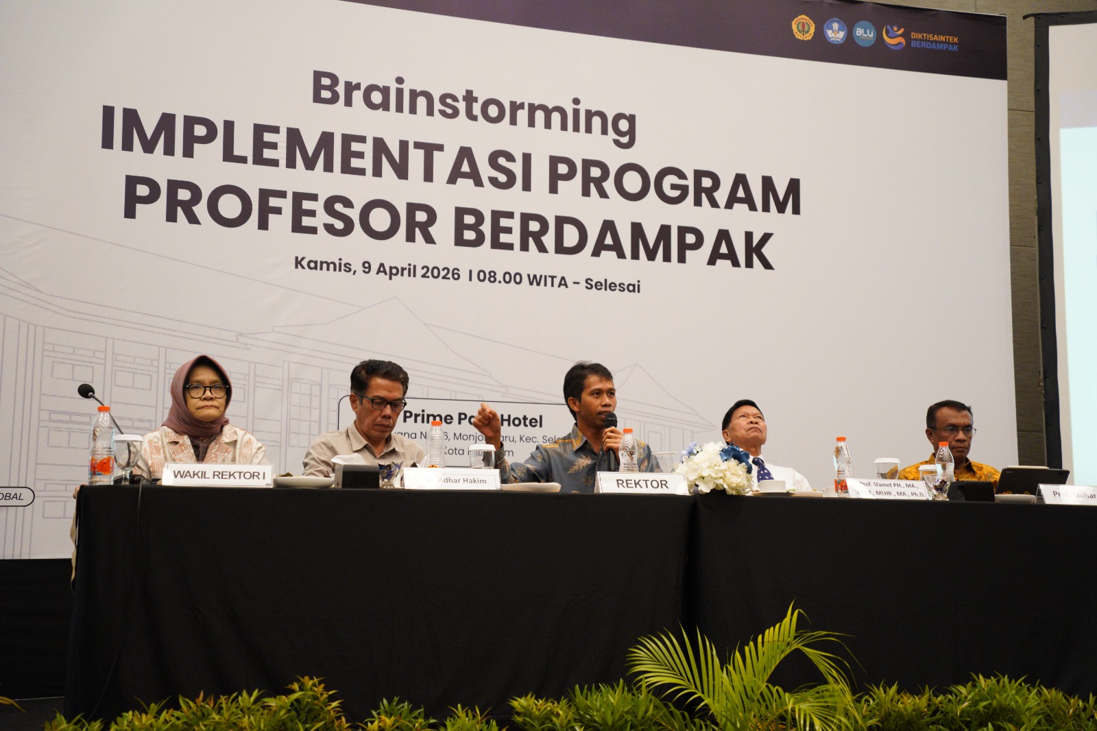 Mataram, Universitas Mataram — Universitas Mataram (Unram) menggelar kegiatan Brainstorming Implementasi Program Profesor Berdampak pada hari Kamis, 9 April 2026 di Prime Park Hotel, Mataram. Kegiatan ini turur dihadiri oleh seluruh jajaran pimpinan universitas serta guru besar di lingkup Unram.