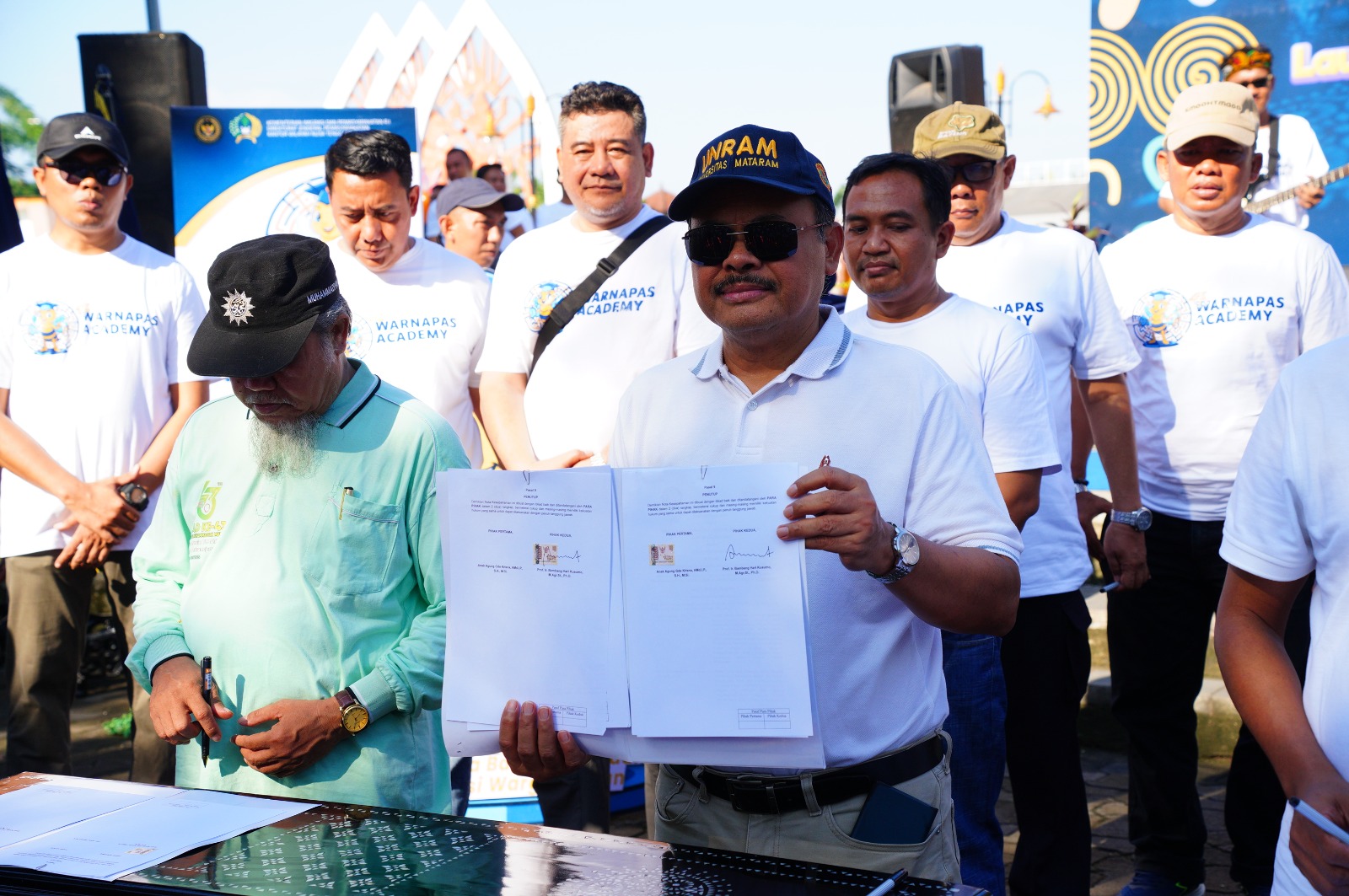 Dalam kesempatan tersebut, Rektor Unram, Prof. Ir. Bambang Hari Kusumo, M.Agr.St., Ph.D., turut hadir untuk melakukan penandatanganan Memorandum of Understanding (MoU), sebagai langkah kolaboratif dalam penguatan program pendidikan, pelatihan keterampilan, dan pendampingan bagi warga binaan pemasyarakatan.